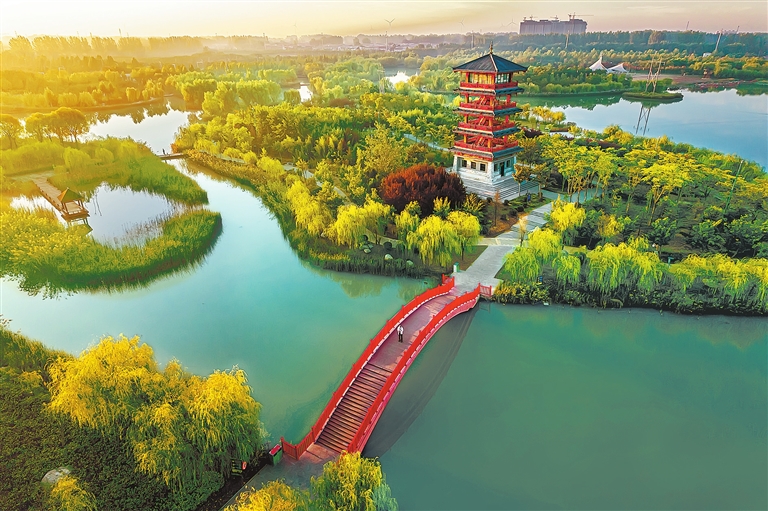 9月2日傍晚,临颍县黄龙湿地公园水波荡漾、景色宜人。谁曾想到,多年前这里还是一片污水横流的窑坑废弃地。